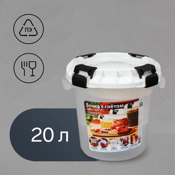 Бочка пищевая, 20 л, с герметичной крышкой, с гнётом, «Для солений»
