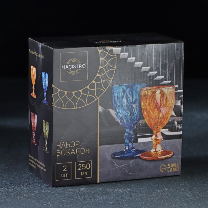 Набор бокалов из стекла Magistro «Ла-Манш», 250 мл, 2 шт, цвет синий