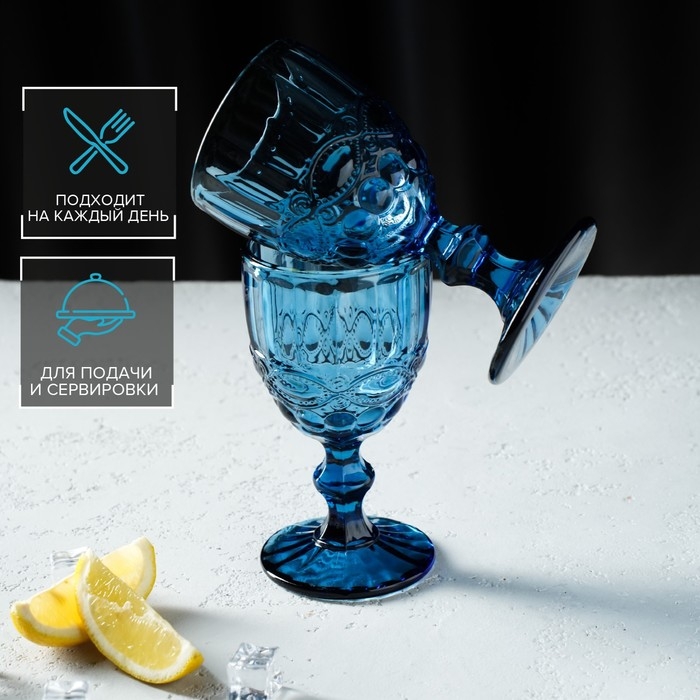Набор бокалов из стекла Magistro «Ла-Манш», 250 мл, 2 шт, цвет синий