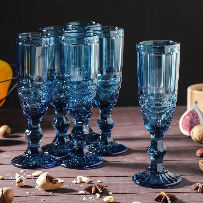 Набор бокалов из стекла для шампанского Magistro «Ла-Манш», 160 мл, 7×20 см, 6 шт, цвет синий