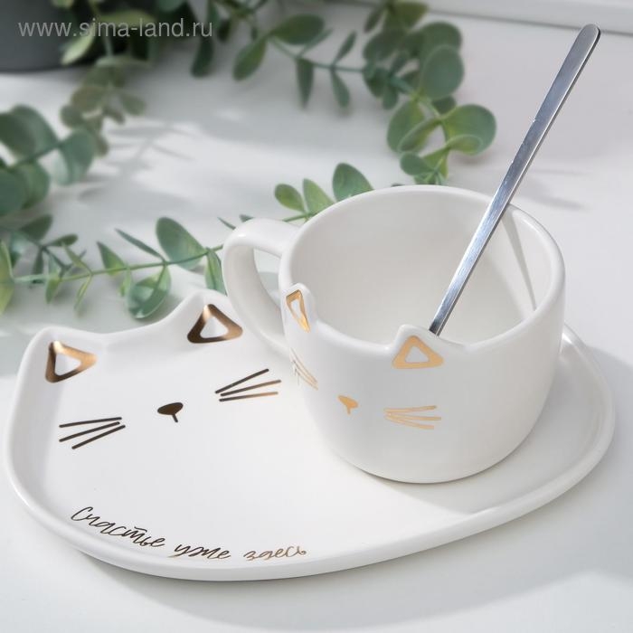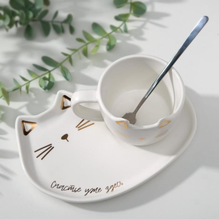 Набор «Счастье уже здесь», кружка 200 мл, блюдечко 18х11