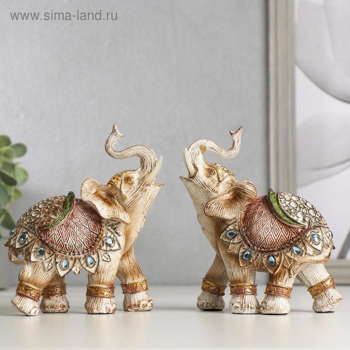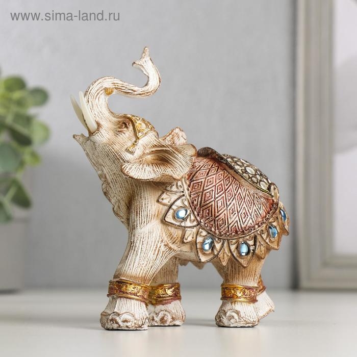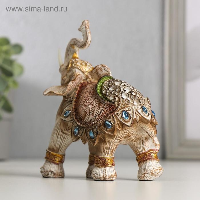 Сувенир полистоун "Слон в бежевой попоне с сапфирами" МИКС 13,5х11,5х6,5 см