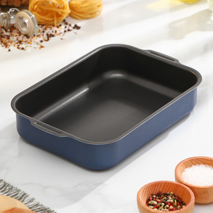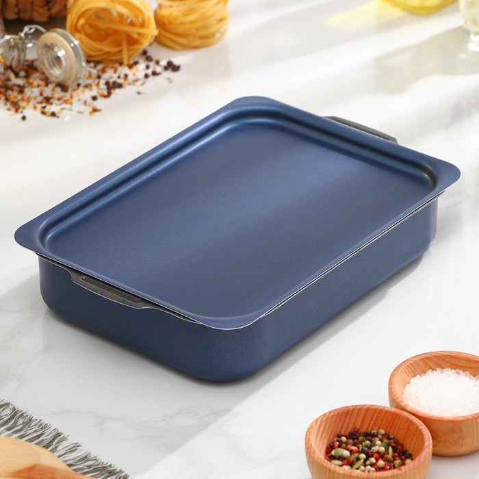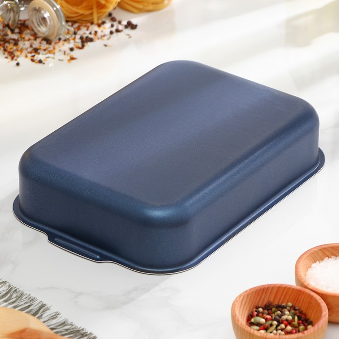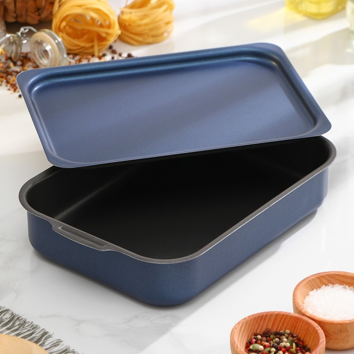 Противень прямоугольный, 19×25 см, h= 6 см, с крышкой, антипригарное покрытие, цвет синий