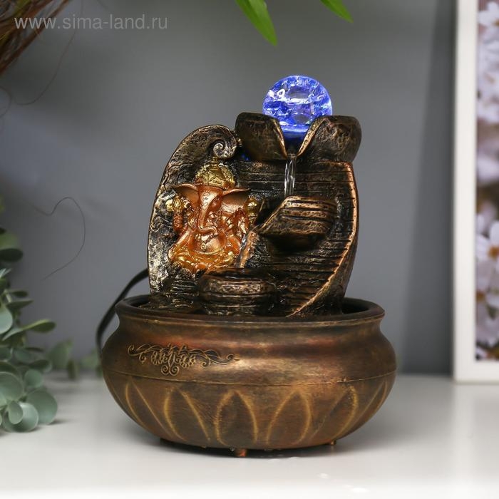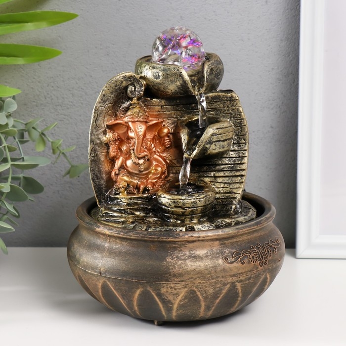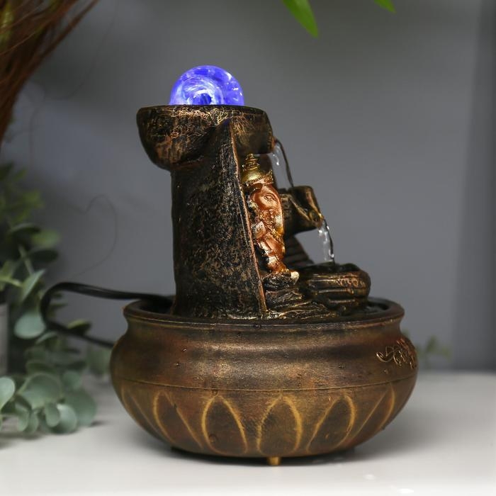 Фонтан настольный от сети, подсветка "Золотой Ганеша у природного фонтана" 20,5х15х15 см
