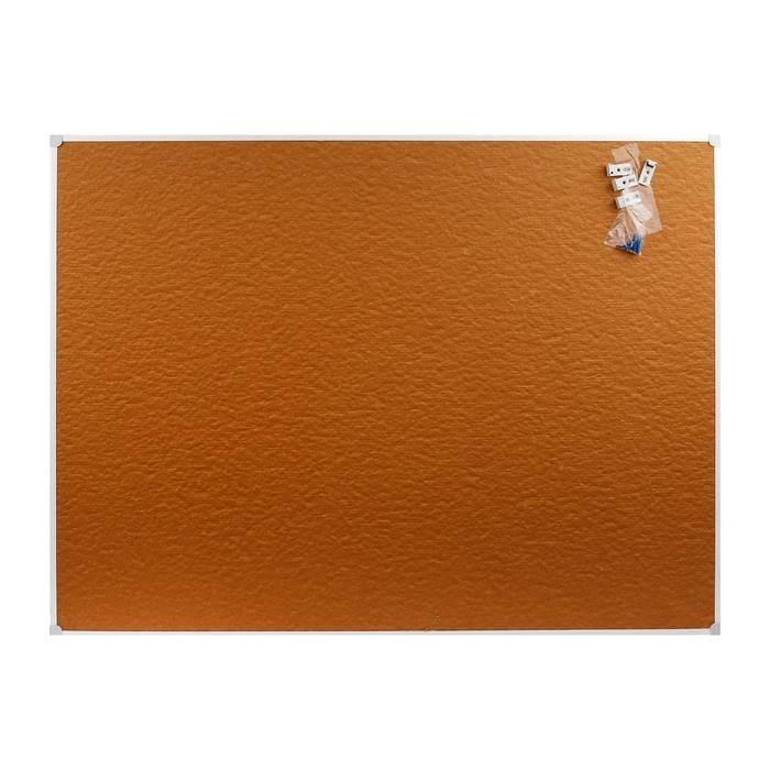 Основа доски - ДВП.Рабочая поверхность покрыта натуральным пробковым слоем толщиной 1 мм.Доска обрамлена ПВХ профилем белого цвета и имеет пластиковые уголки серого цвета.