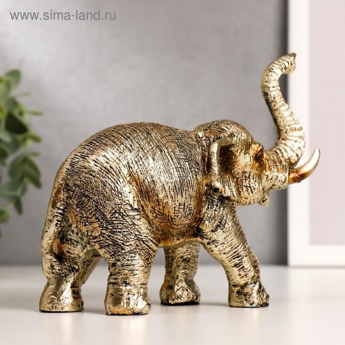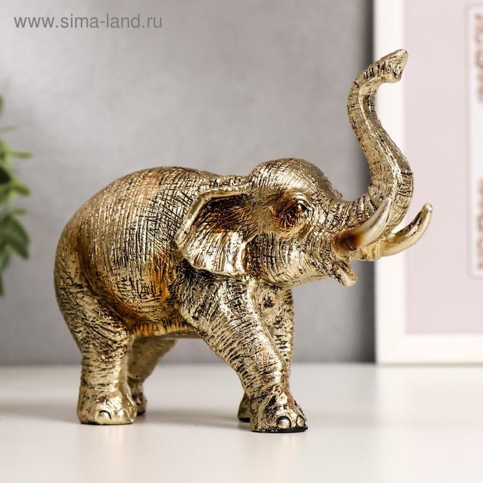 Сувенир полистоун "Золотой слон" 13х16,8х6,5 см