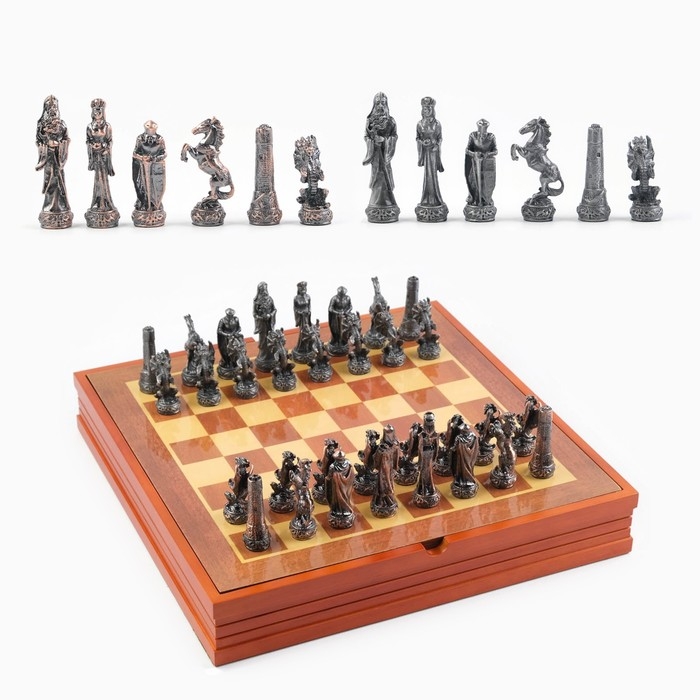 Шахматы сувенирные "Средневековье", h короля-8 см, h пешки-5.6 см. d-2 см, 36 х 36 см