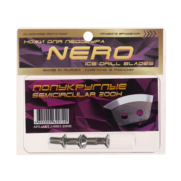 Ножи для ледобура полукруглые универсальные, d=200 мм ПВ, нержавеющая сталь, набор 2 шт.