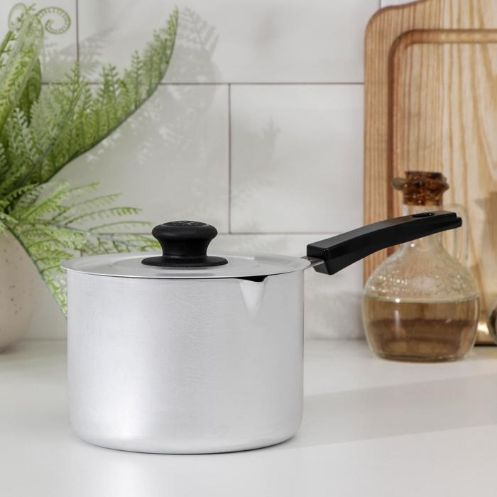 Ковш, 1 л, карбоновая ручка, металлическая крышка, цвет серый