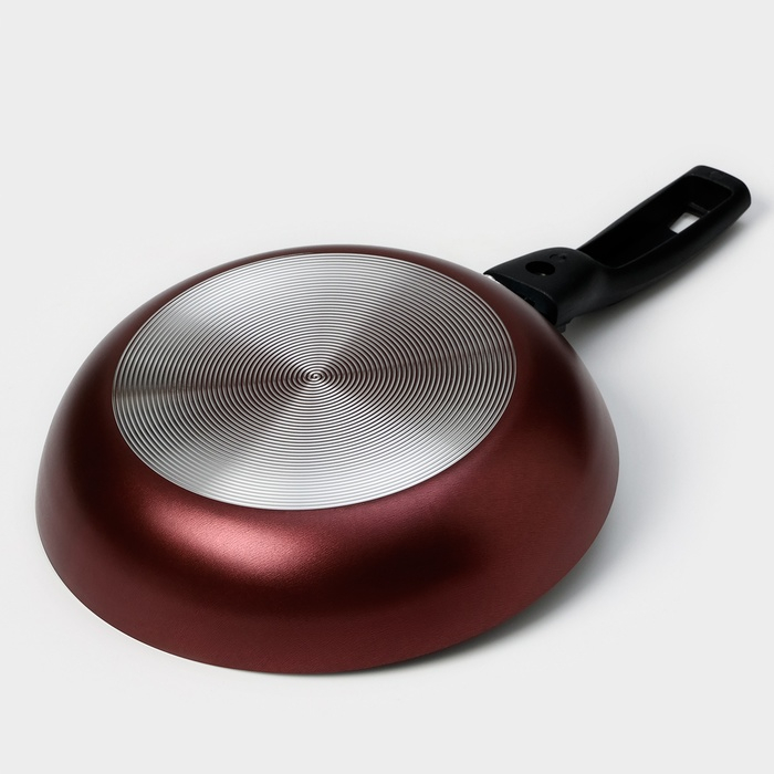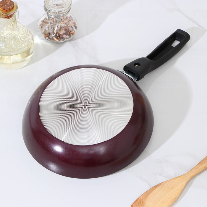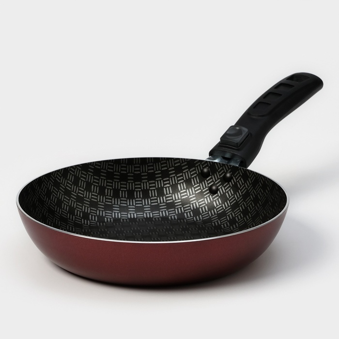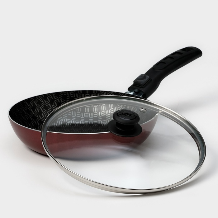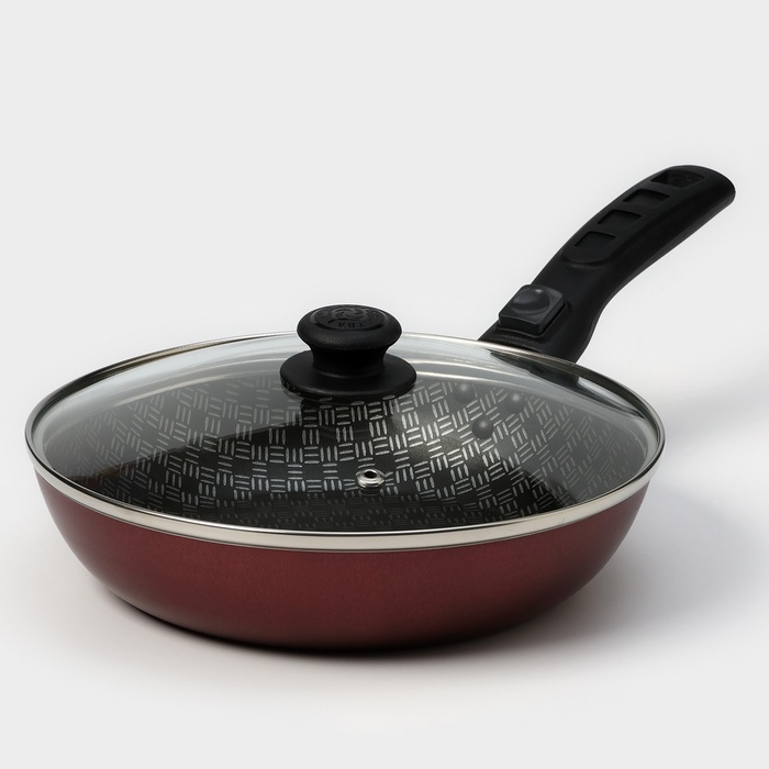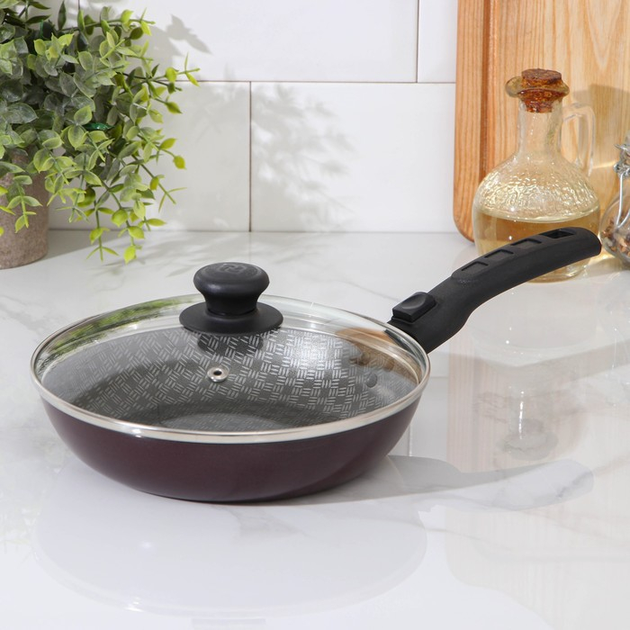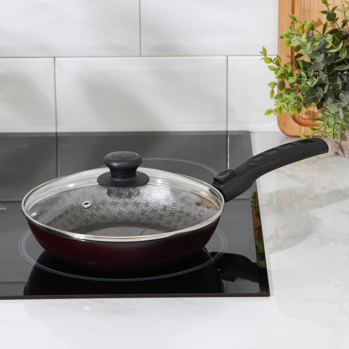 Сковорода «Хозяюшка», d=20 см, съёмная ручка, стеклянная крышка, антипригарное покрытие, цвет бордовый