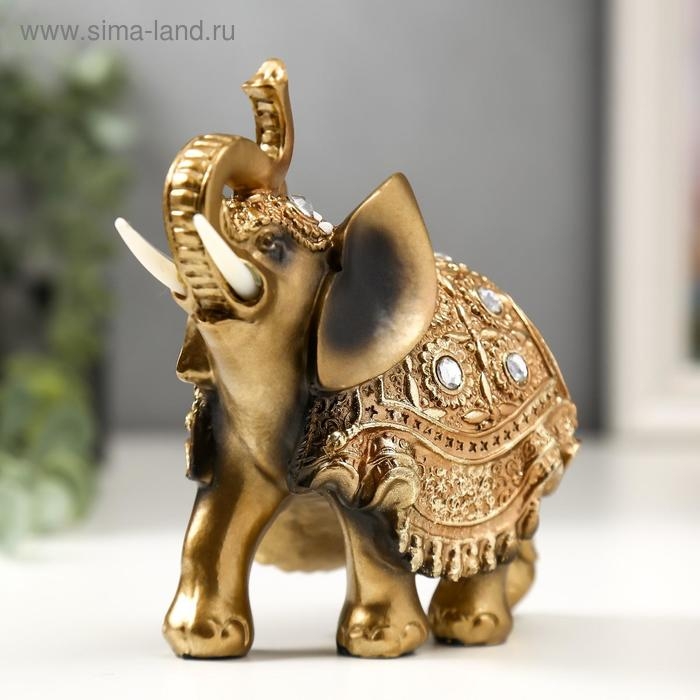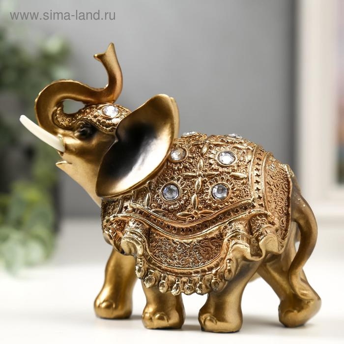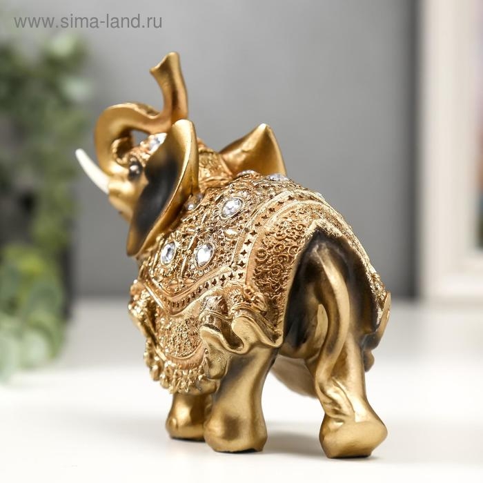 Сувенир полистоун "Слон в золотой попоне с кристаллами" 13,5х12,5х5,5 см