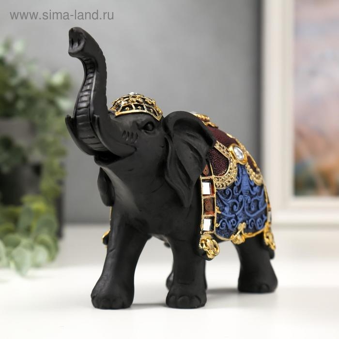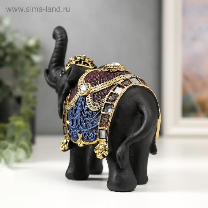 Сувенир полистоун "Чёрный слон с цветными узорами на попоне" 16х17,5х7 см