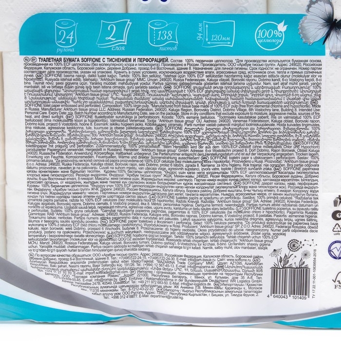 Туалетная бумага Soffione Family pack, 2 слоя, 24 рулона