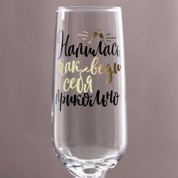 Бокал для шампанского «Напилась так веди себя прикольно», 210 мл, тип нанесения рисунка: деколь
