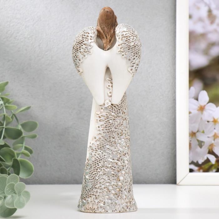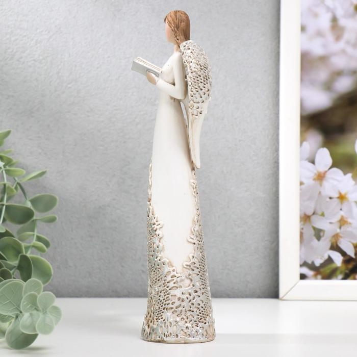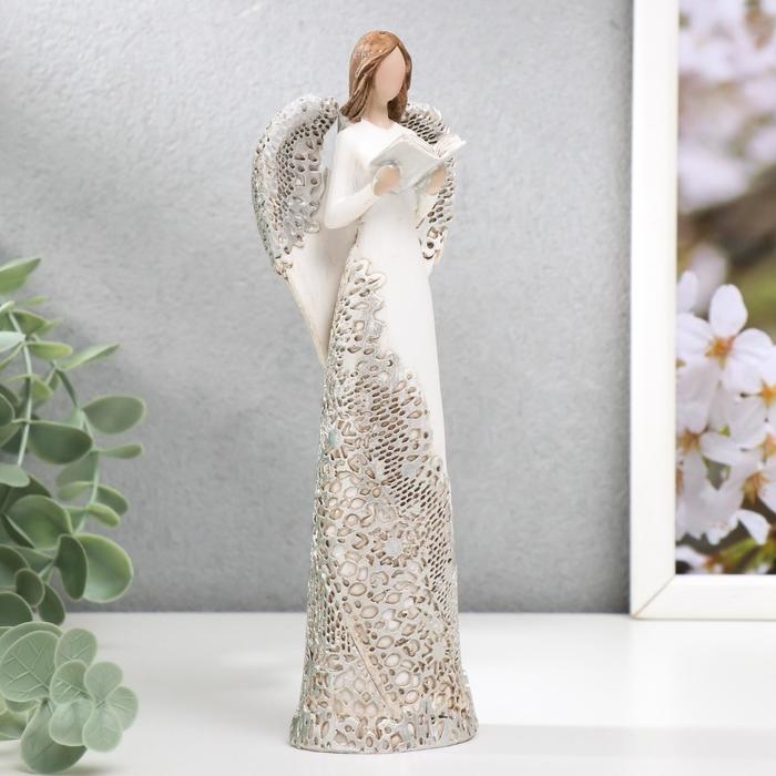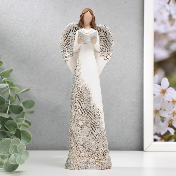 Сувенир полистоун "Ангел с книгой, платье с серебристыми узорами" 19,5х7х4,5 см