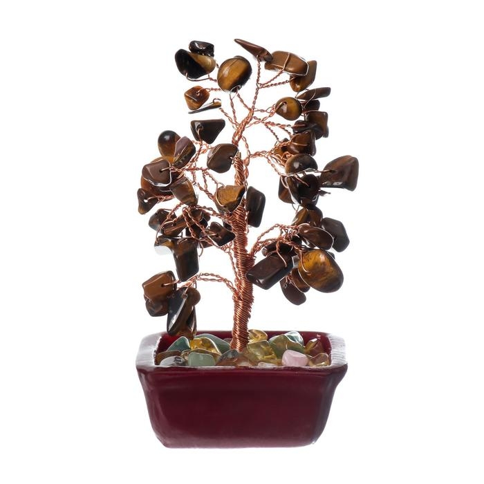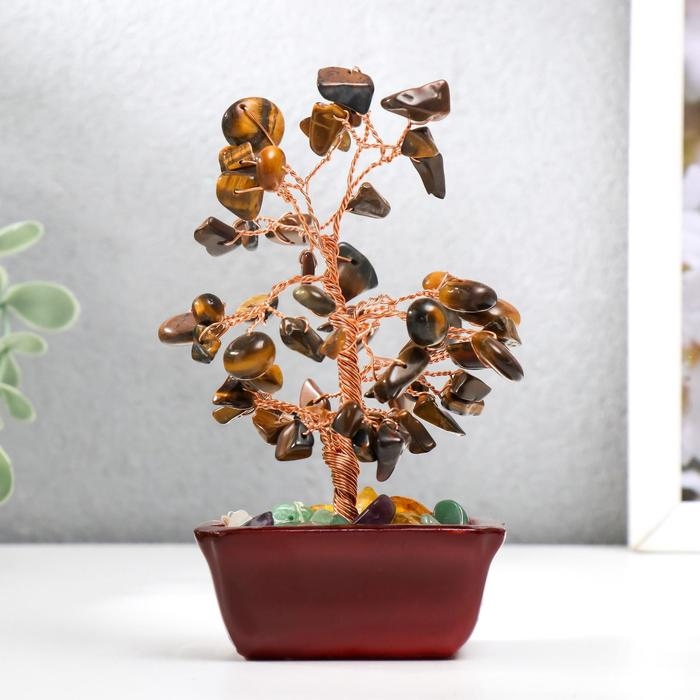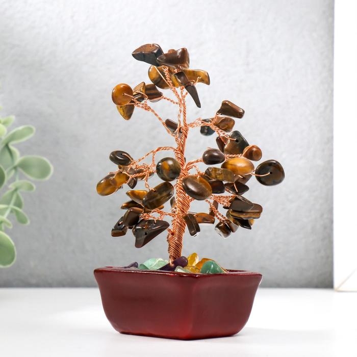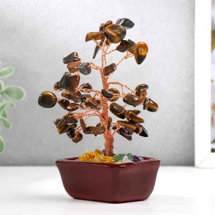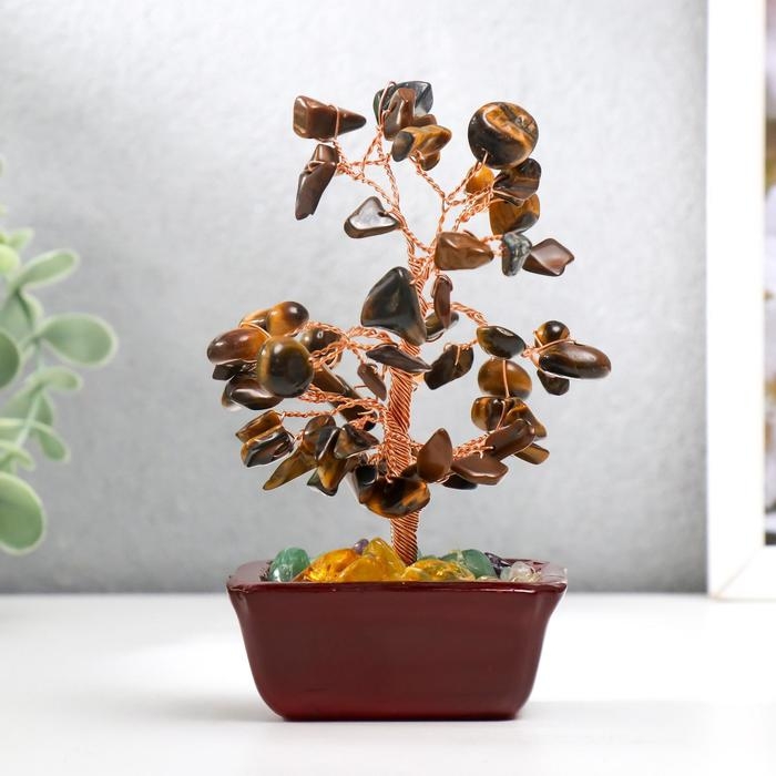 Сувенир бонсай 60 камней "Денежное дерево с тигровыми кристаллами" 13х7х5 см