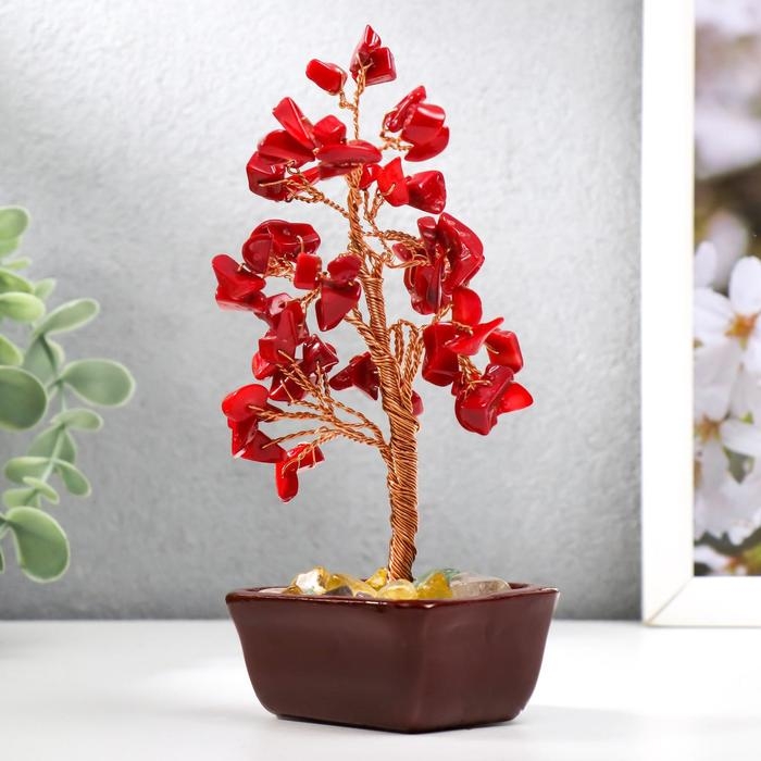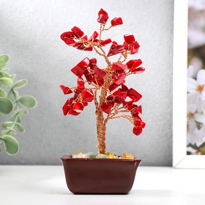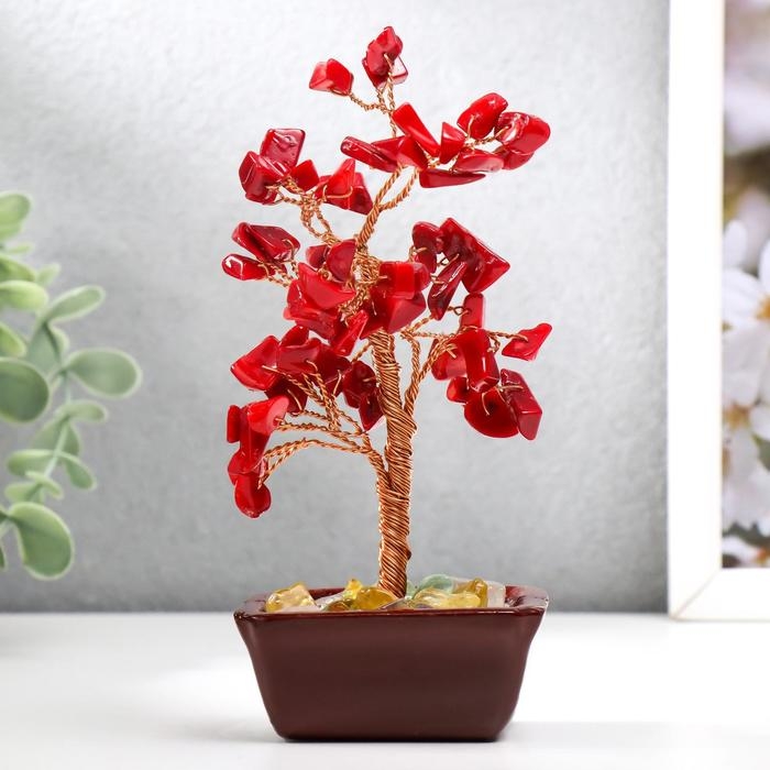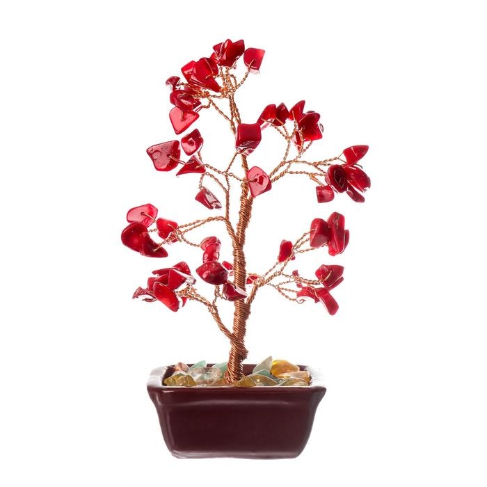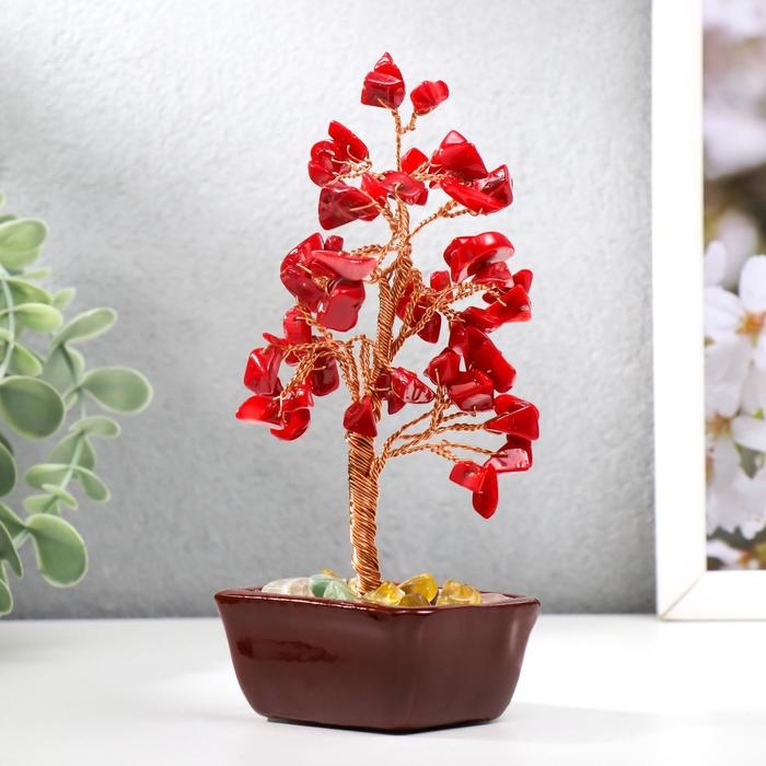 Сувенир бонсай 60 камней "Денежное дерево с рубинами" 13х7х5 см