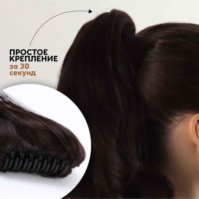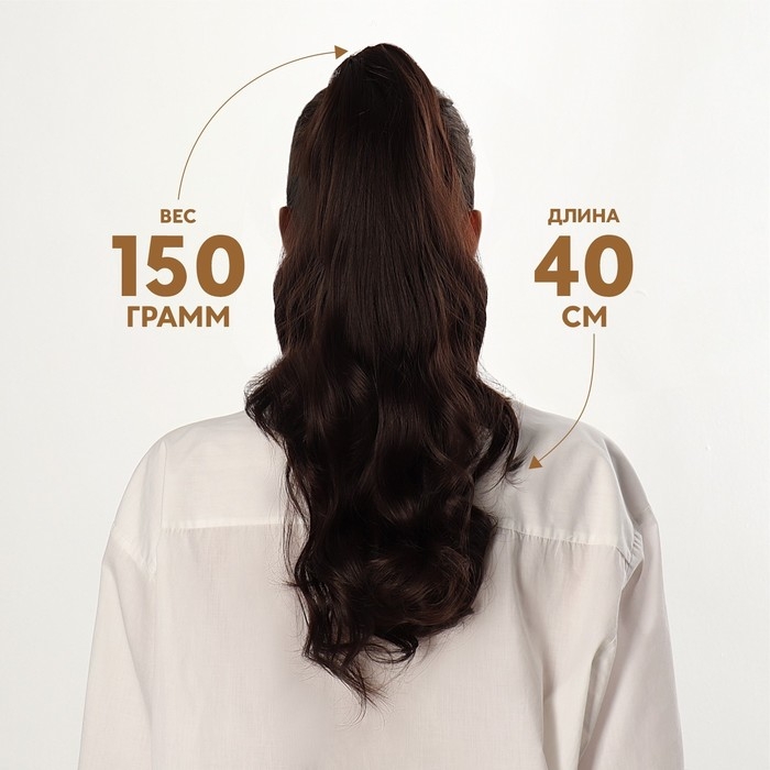 Хвост накладной, волнистый волос, на крабе, 40 см, 150 гр, цвет каштановый(#HTY4А)
