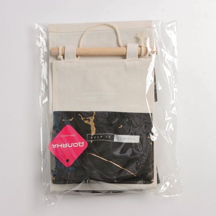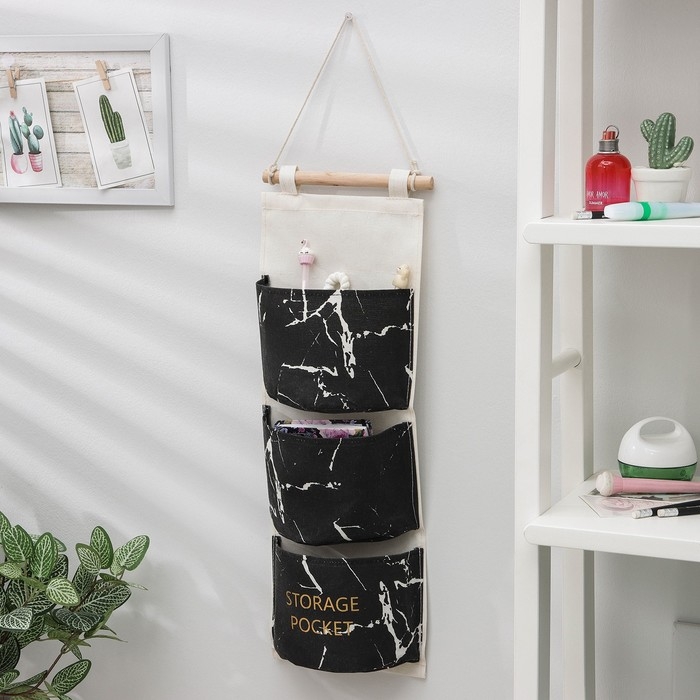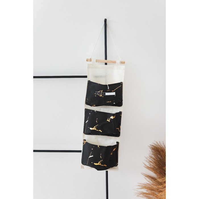 Органайзер подвесной с карманами Доляна «Мрамор», 3 отделения, 20×58 см, цвет чёрный