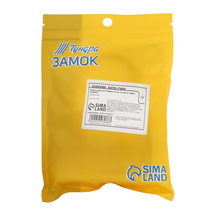 Замок навесной ТУНДРА 75 мм, 3 ключа, подвес