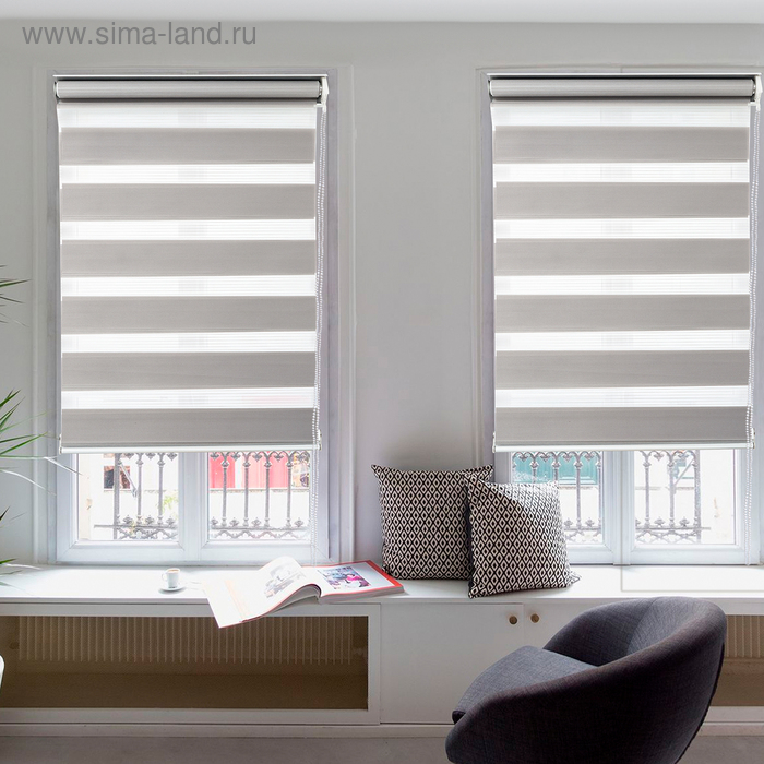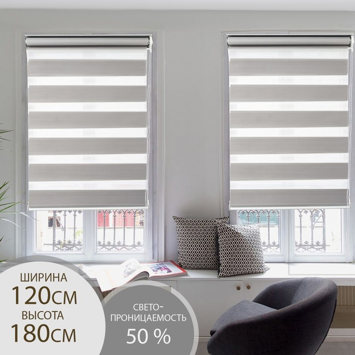 Штора рулонная «День-Ночь», 120×180 см (с учётом креплений 3,5 см), цвет серый