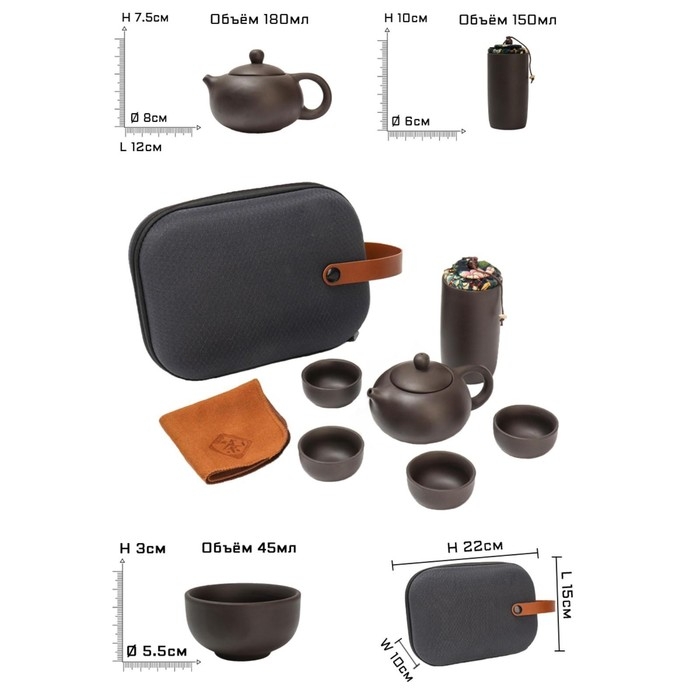 Портативный чайный набор, благодаря компактной сумке с ручкой, удобно брать с собой на природу, в гости, на дачу. Посуда подходит как для торжественных чайных церемоний, так и для повседневного домашнего использования.