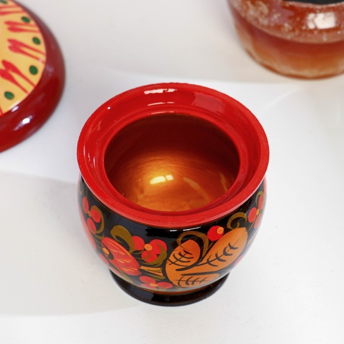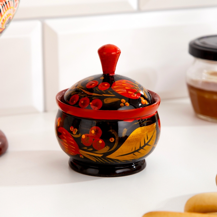 Солонка «Ягодка», малая, с крышкой, 7×6 см, хохлома