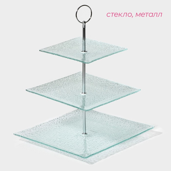 Этажёрка - фруктовница прямоугольная «Акцент», 3 яруса, 25×35 см, стекло