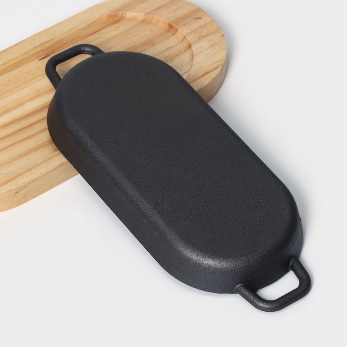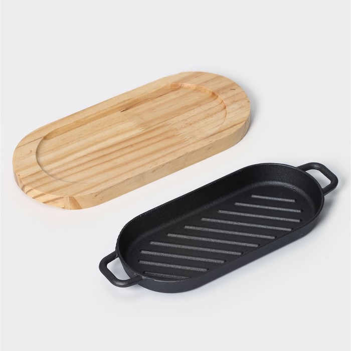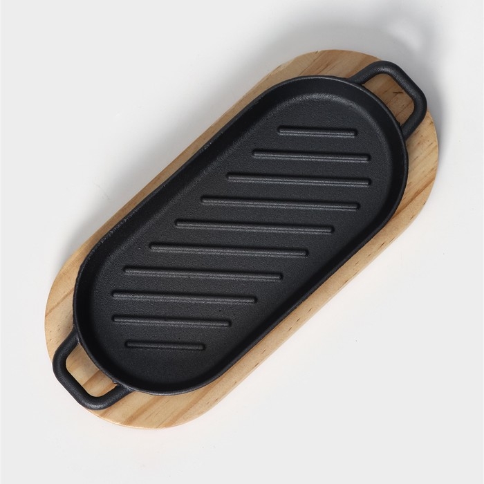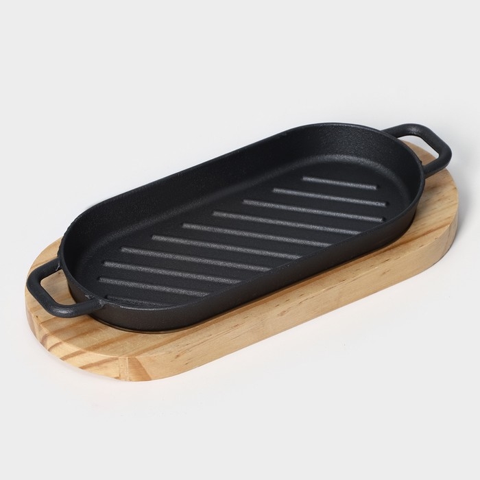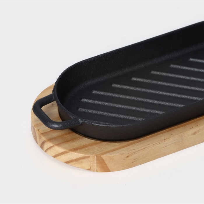 Сковорода на деревянной подставке «Овал гриль», с ручками 26×10×2,5 см