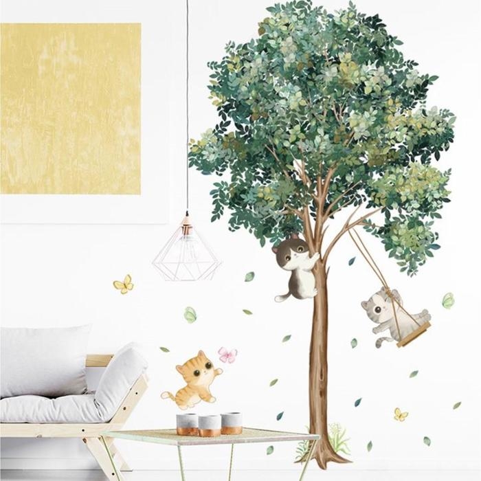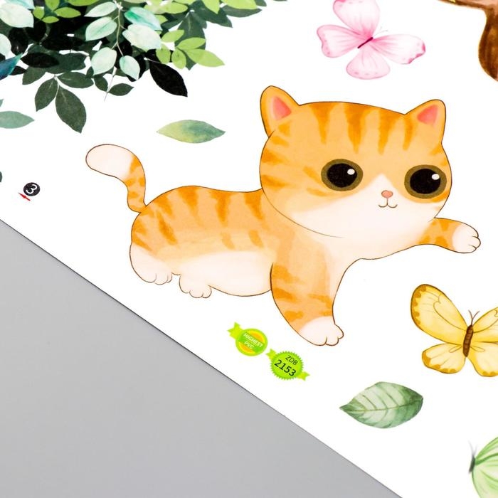 Наклейка пластик интерьерная цветная "Котята и дерево" 30х90 см набор 2 листа