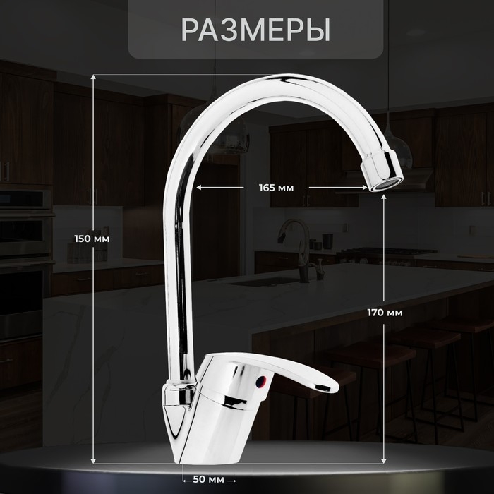 Смеситель для кухни ZEIN Z3102, однорычажный, высокий излив, хром
