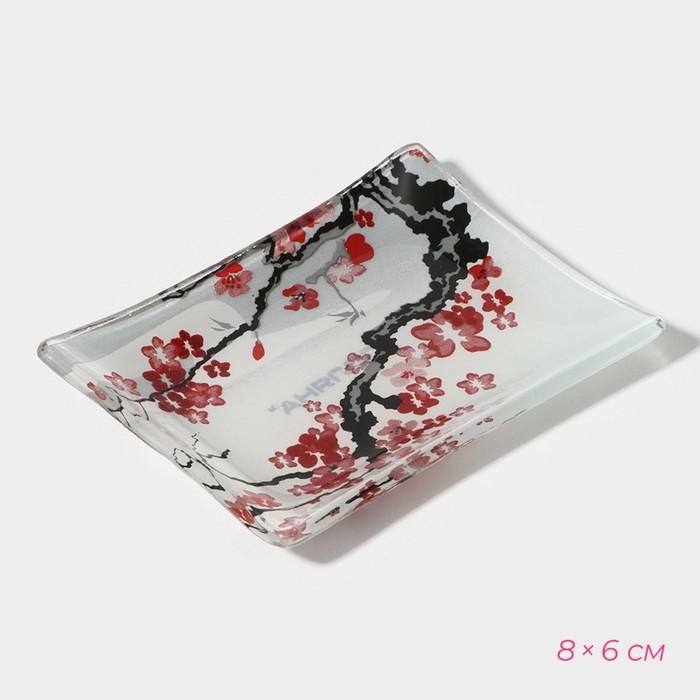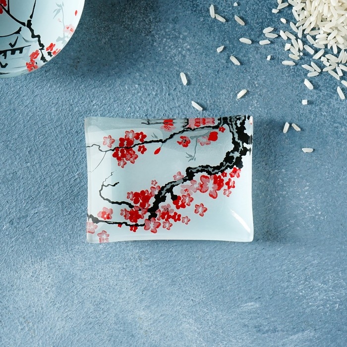 Набор для суши из стекла Доляна «Сет», 3 предмета: соусники 8×2 см, 8×6 см, подставка 25×15×2 см