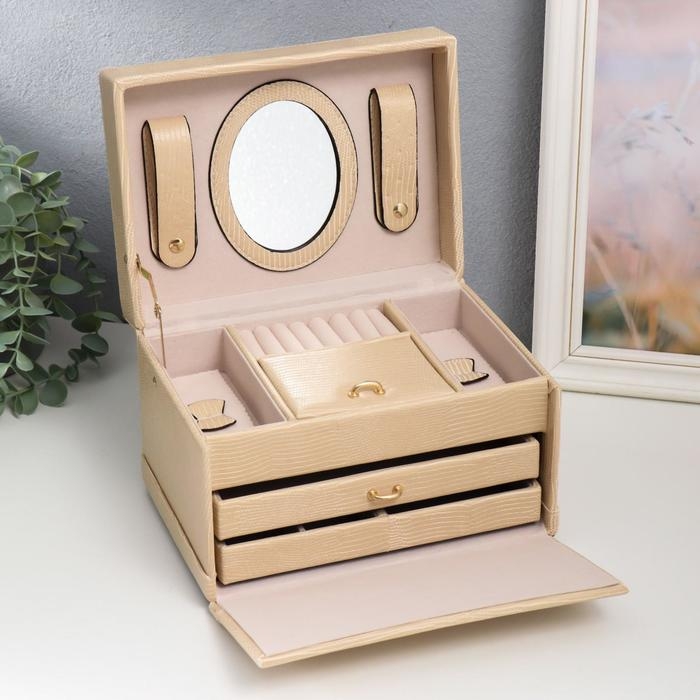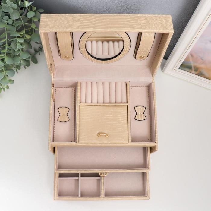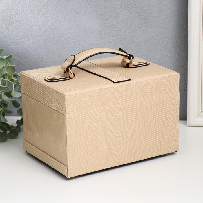 Шкатулка кожзам для украшений сундучок "Рептилия беж" с пряжкой 16х22х14 см