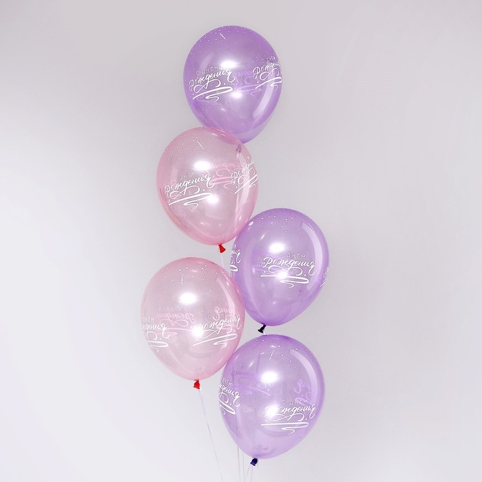 Воздушный шар латексный 12" «С Днём рождения», прозрачный, 50 шт., МИКС