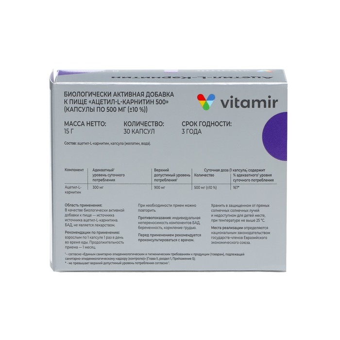 Ацетил-L-Карнитин "Витамир", 30 капсул