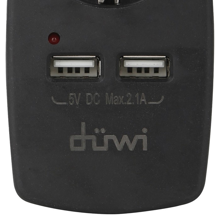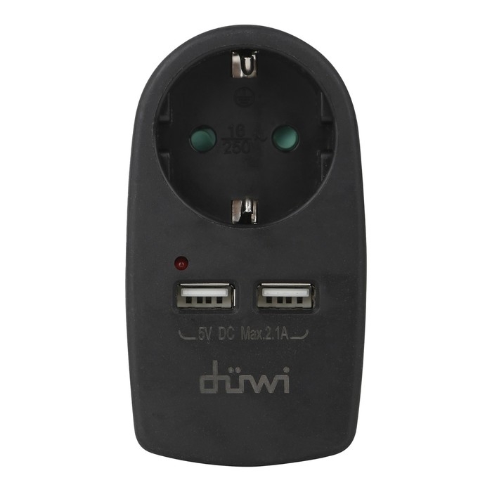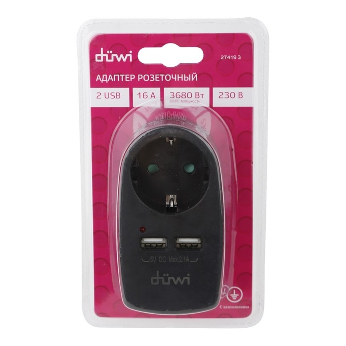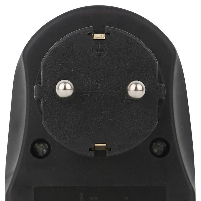 Адаптер 1 гнездо + 2 USB порта, на евро вилку, с/з, 16A, 230В, 3680Вт, IP20, черный, 27419 3