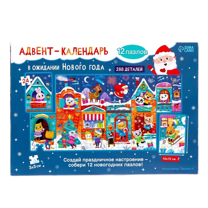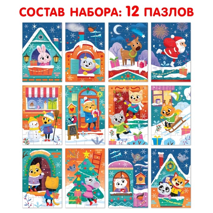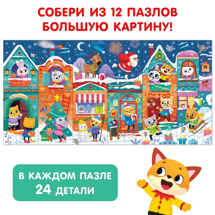 Адвент-календарь на 12 дней «В ожидании Нового года», 12 пазлов по 24 детали