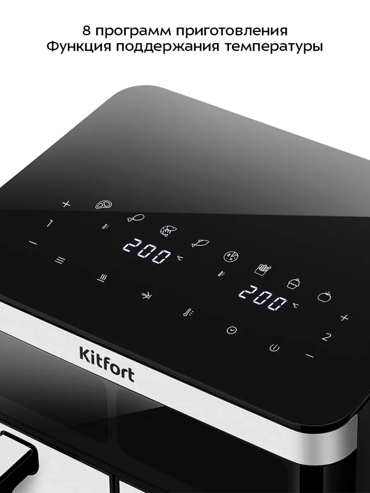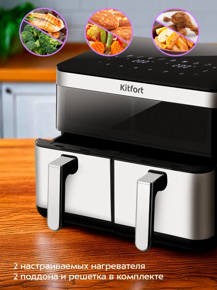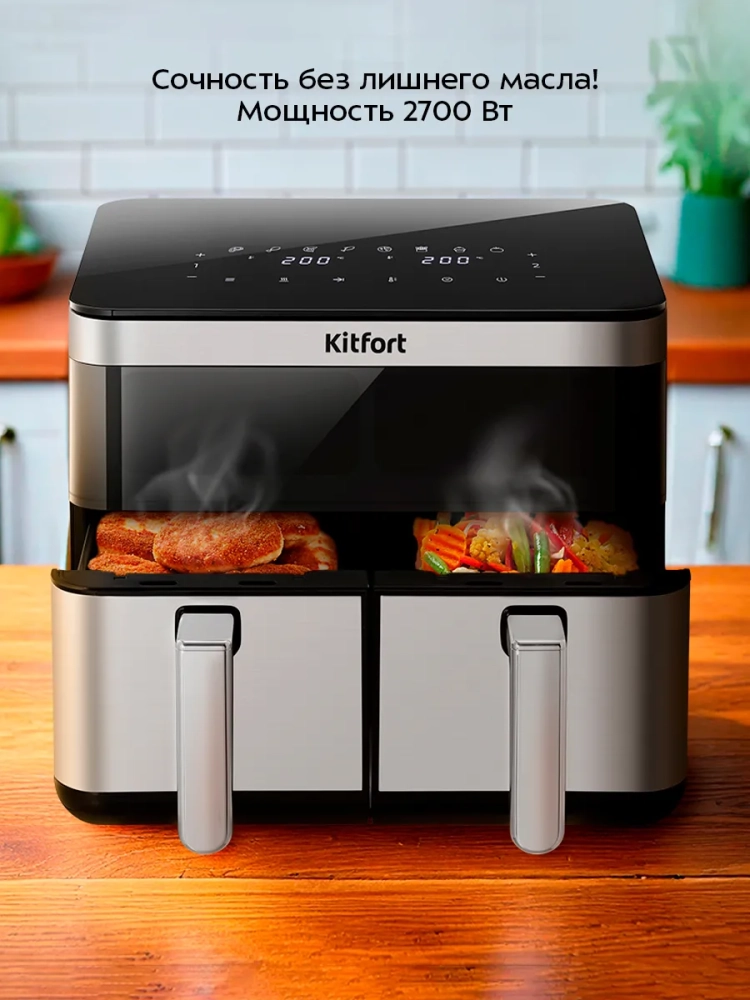 Современный аэрогриль Kitfort КТ-8110 позволяет готовить большинство продуктов без добавления масла, при этом они получаются сочными и с хрустящей корочкой.