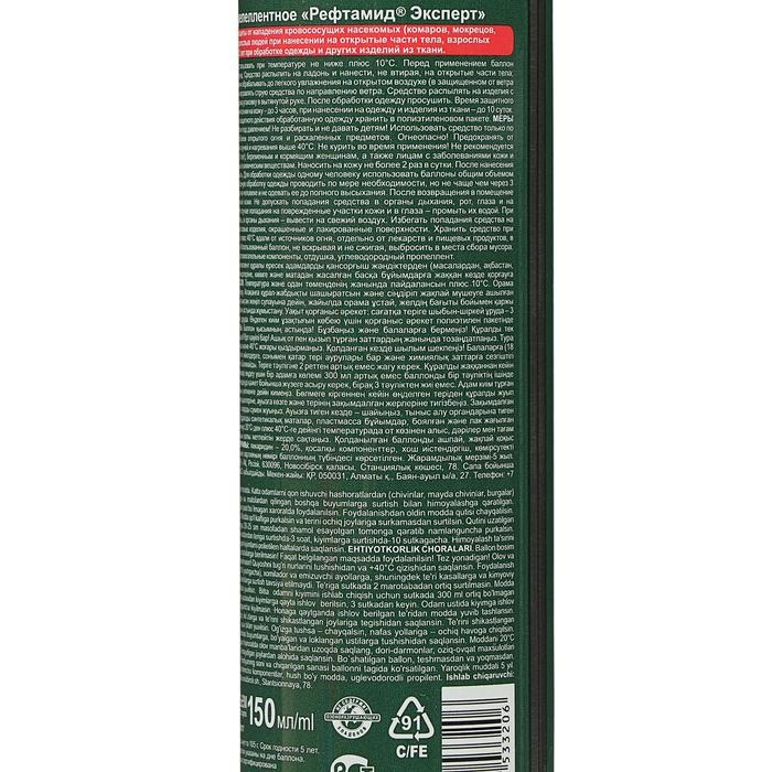 Аэрозоль репеллентный от комаров "Рефтамид" Эксперт, для чувствительной кожи, 150 мл
