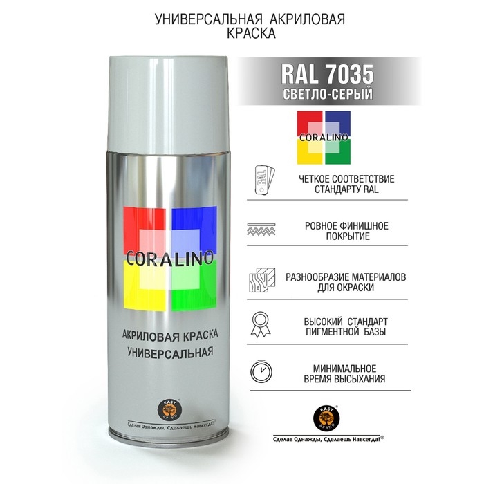 Аэрозольная краска эмаль Светло-Серая 520мл CORALINO RAL7035