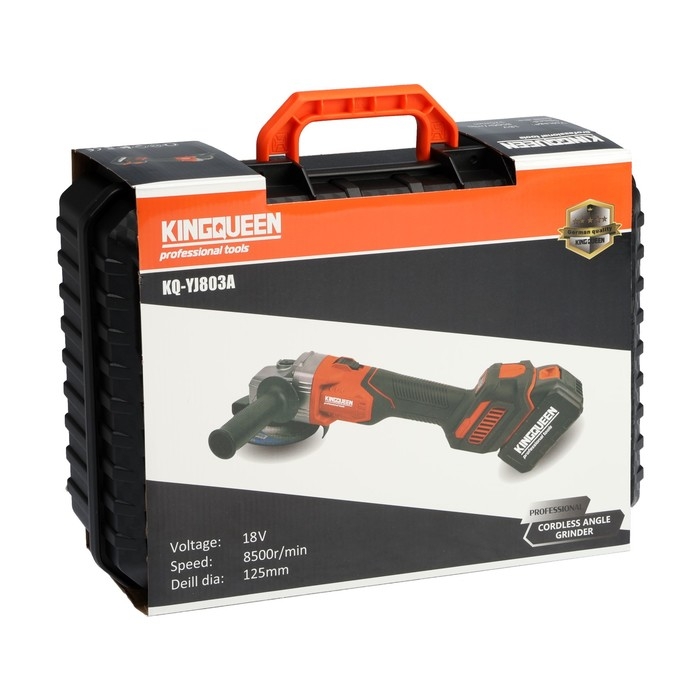 Аккумуляторная угловая шлифмашина KINGQUEEN KQ-YJ803A, бесщеточная, 18 В, 2х4 Ач, d=125 мм
