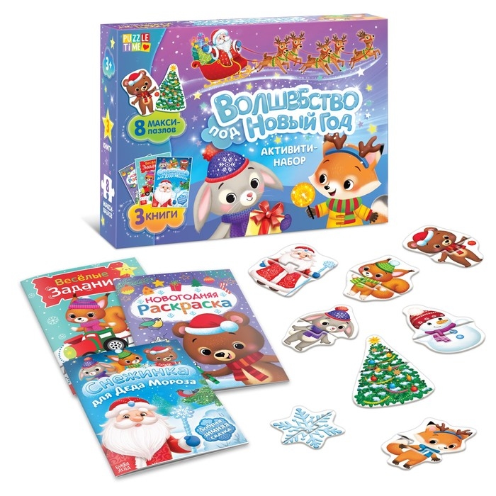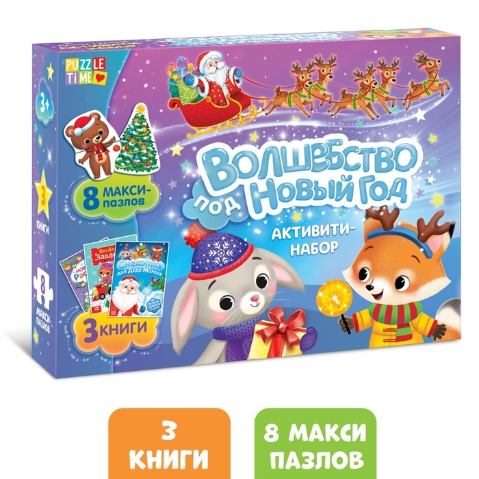Активити набор «Волшебство под Новый Год», 3 книги, 8 макси пазлов