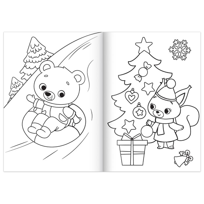 - Книги в комплекте — это сборник весёлых заданий, новогодняя раскраска и добрая зимняя сказка.