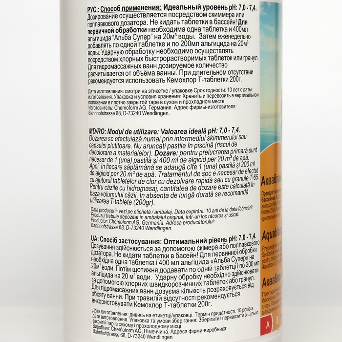 Активный кислород для дезинфекции воды в бассейнах Аквабланк О2 в таблетках (200 г) 1 кг