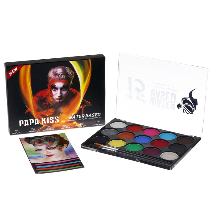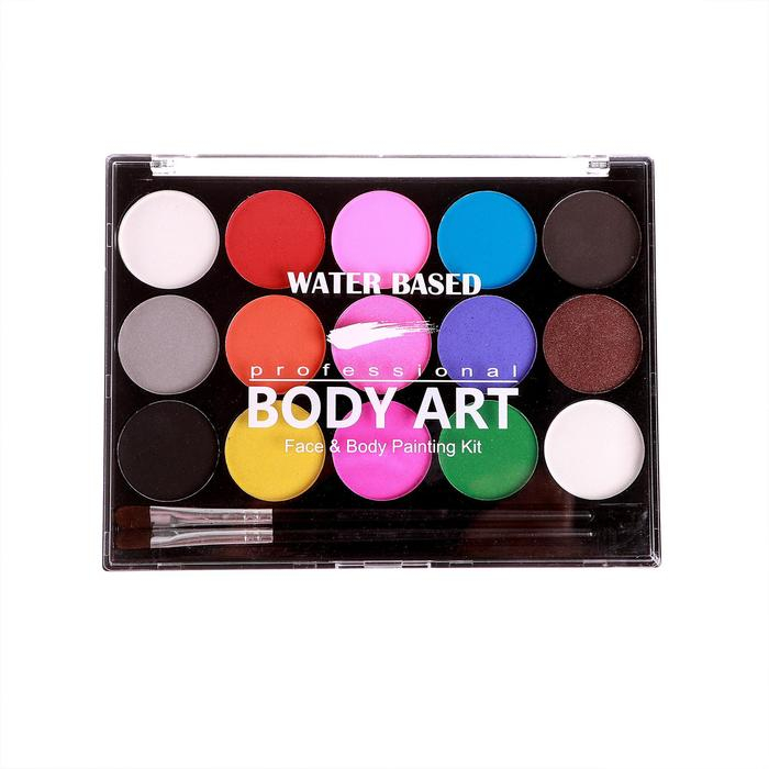 Аквагрим профессиональный для лица и тела 15 цветов по 1,5 гр. + 2 кисточки