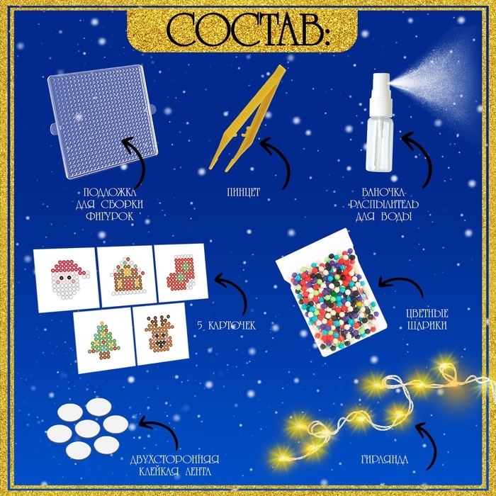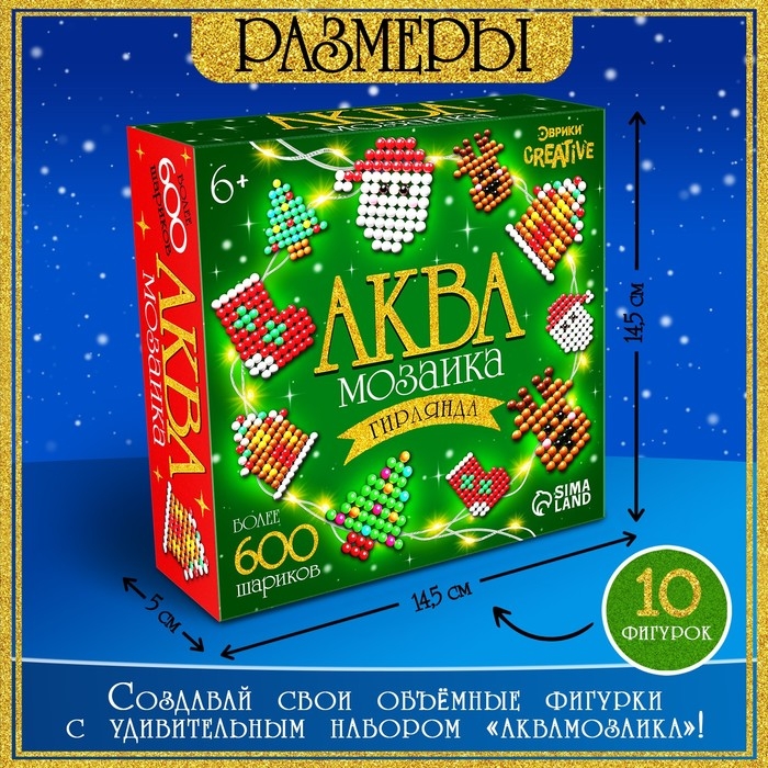 Аквамозаика «Новогодняя гирлянда», 10 фигурок, 600 шариков