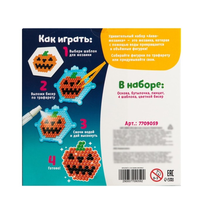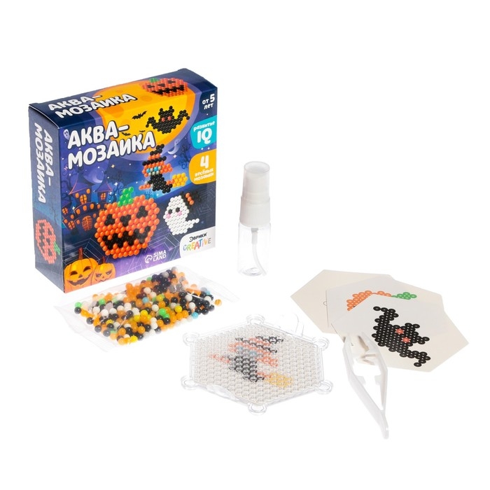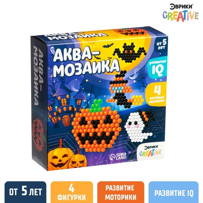 Аквамозаика от торговой марки «Эврики» скрасит дни в ожидании Хэллоуина и поможет весело и с пользой провести время. Ребёнок соберёт 4 объёмных фигурки из шариков-пикселей, потренирует мелкую моторику и внимание.