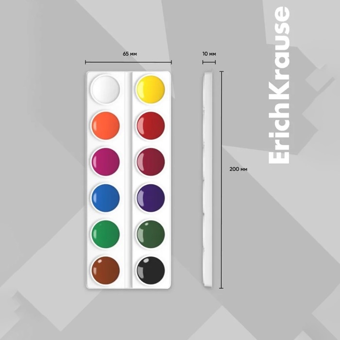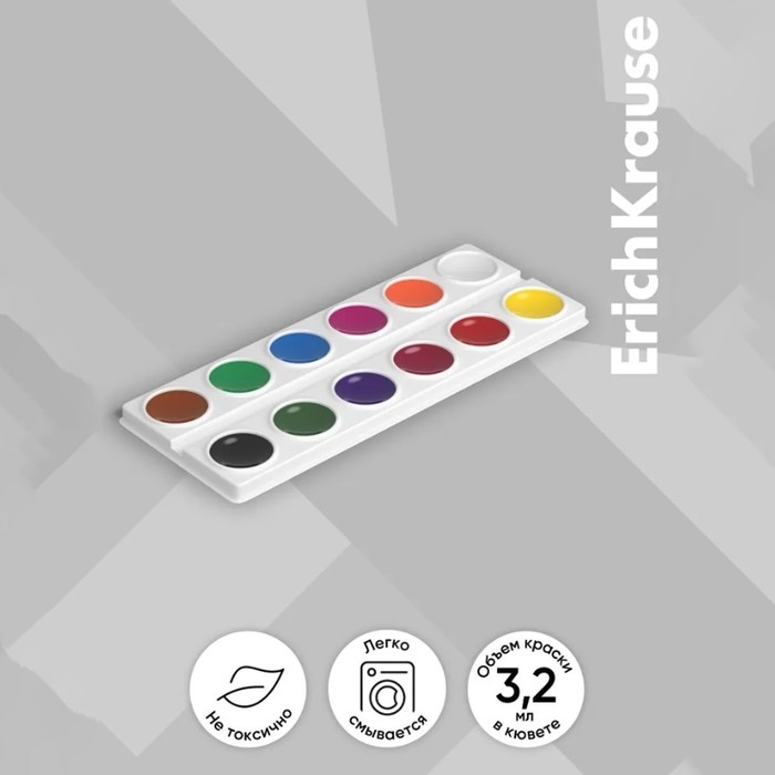 Акварель 12 цветов, ErichKrause, без кисти, мягкий пластик, картонная коробка, европодвес (эконом упаковка)
