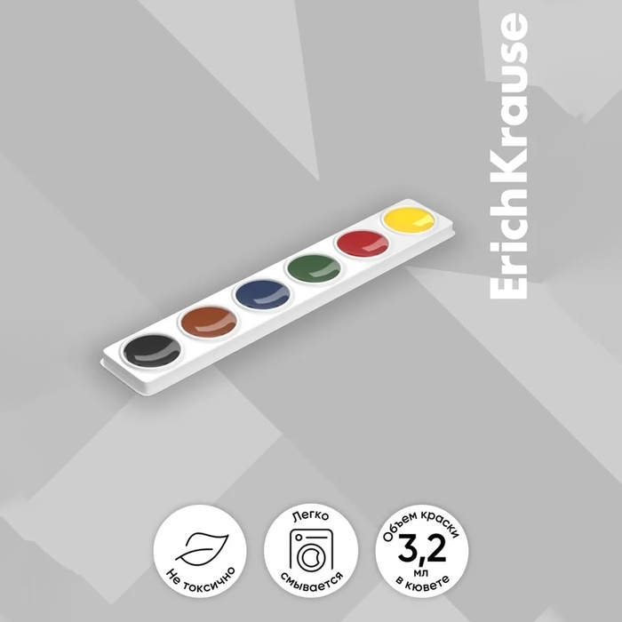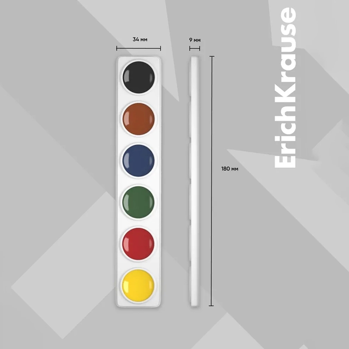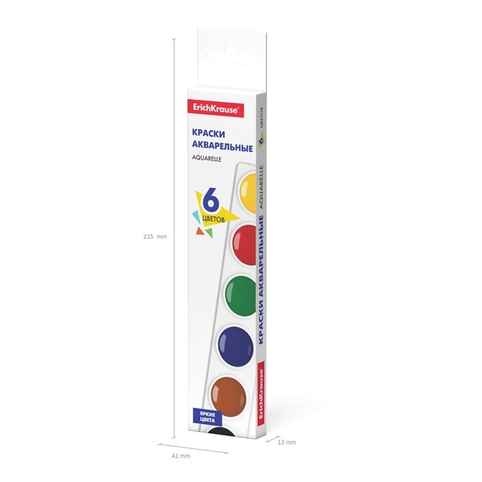 Акварель 6 цветов, ErichKrause, без кисти, картон, европодвес (облегченная упаковка)