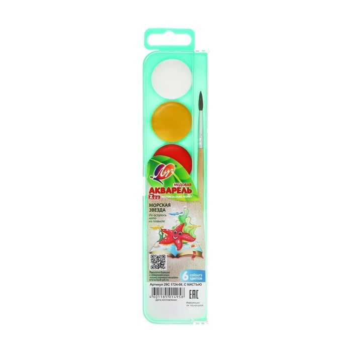 Акварель "Луч" ZOO, 6 цветов, с кистью